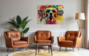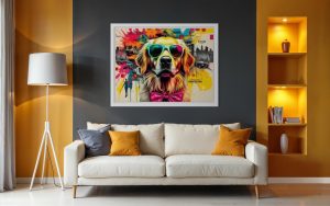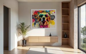 „A Golden Taste Journey“ ist mehr als nur ein Bild; es ist eine Einladung zum Träumen, zum Entdecken und zum Genießen der einfachen Freuden des Lebens – insbesondere der kulinarischen. Perfekt für Hundeliebhaber, Reisebegeisterte und alle, die eine einzigartige Mischung aus Pop-Art und herzerwärmendem Charme schätzen, wird dieses Stück jedem Raum einen Farbtupfer, Persönlichkeit und ein grenzenloses Gefühl von Abenteuer verleihen. Hol dir dieses entzückende Zeugnis der epischen Suche eines Golden Retrievers nach dem ultimativen globalen Leckerbissen-Erlebnis nach Hause!